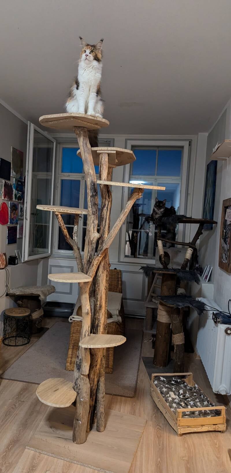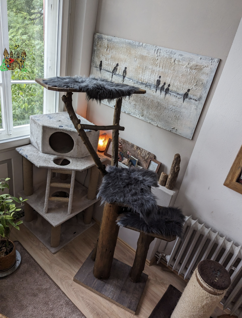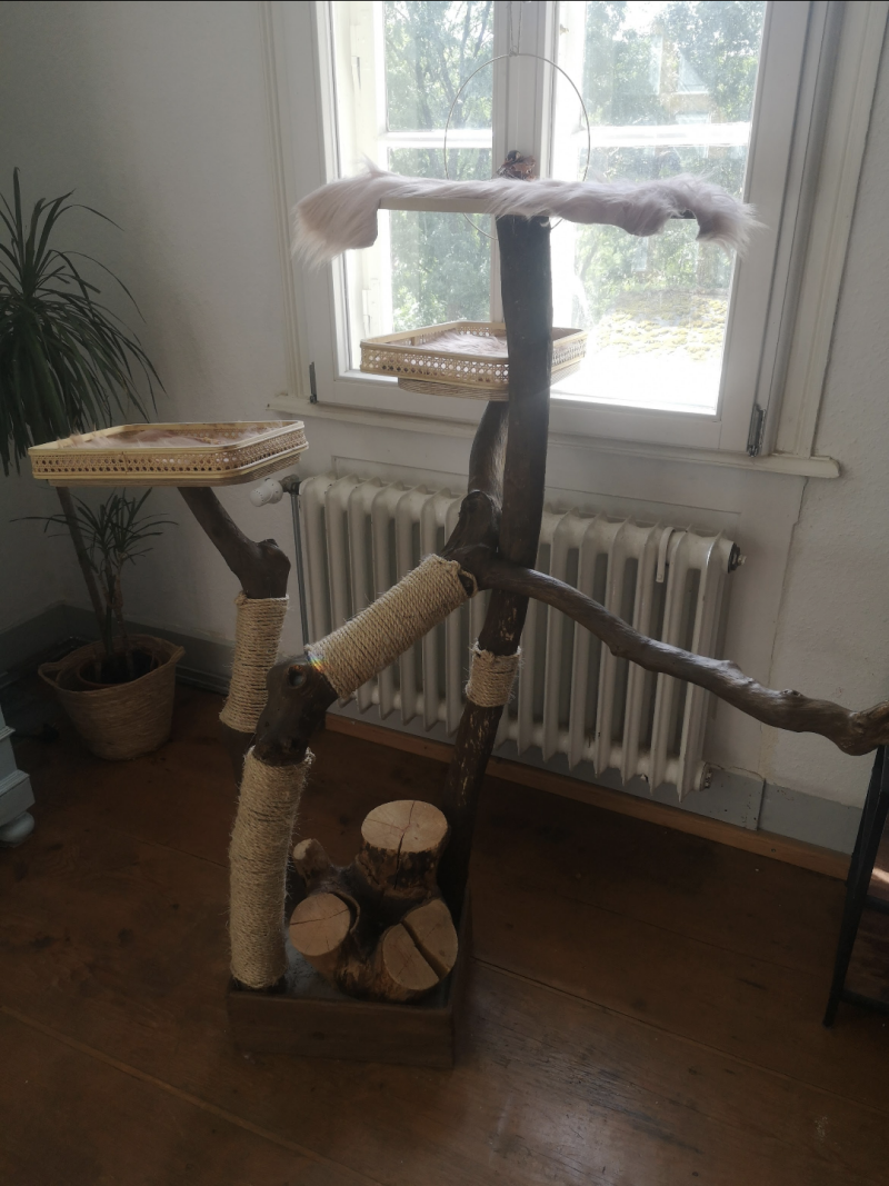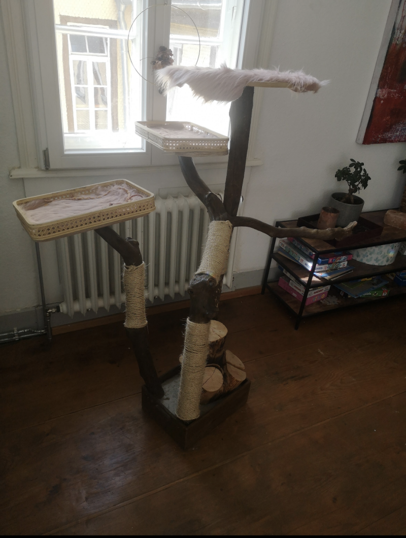 Da ich sehr gerne kreativ bin, habe ich auch schon einiges für unsere Fellnasen selbst gemacht. Neben den gehäkelten Körbchen, waren auch schon einige Kratzbäume aus Treibholz dabei. Hier mal einige Bilder.