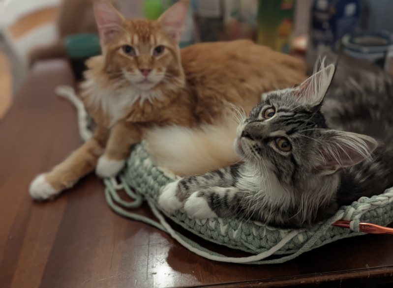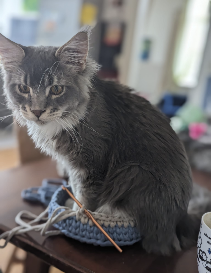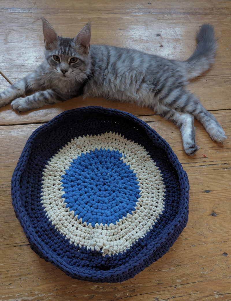 Außerdem häkle ich sehr gerne Körbchen für unsere Katzen und wenn ich es zeitlich schaffe, auch für die Kitten die hier ausziehen, damit sie den gewohnten Geruch mit ins neue Zuhause nehmen können.